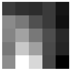 Commençons par traduire notre image de 25 pixels en des valeurs numériques qui représentent les nuances de gris: