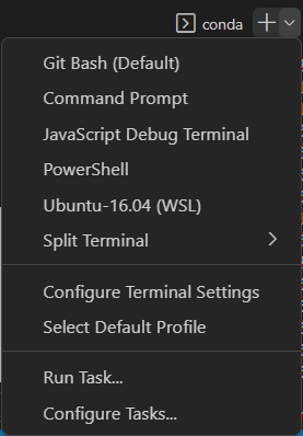Dans VS Code, lorsque le terminal est actif, se rendre sur la petite flèche à côté du + :